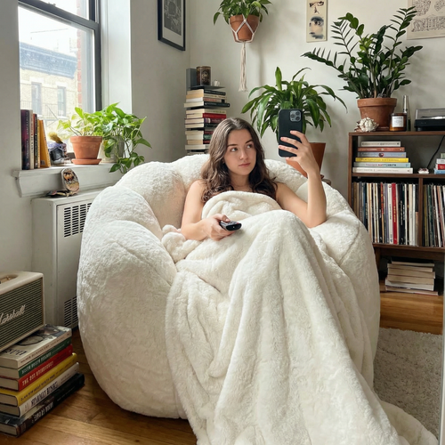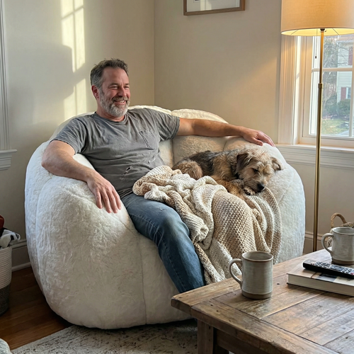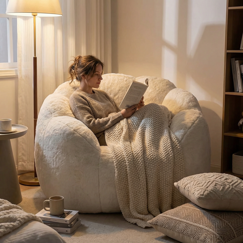 Ultra-soft faux fur floral bean bag sofa with body-adapting fill, cozy design, and spacious fit. Transform your lounge time into pure relaxation starting today.